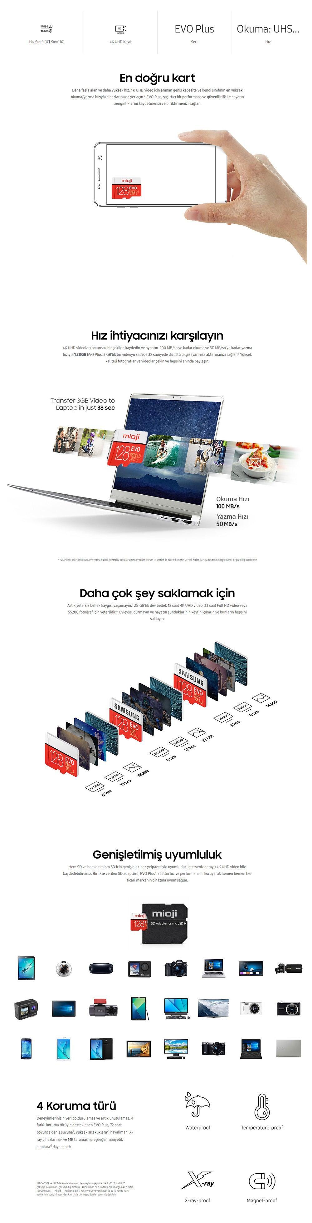 | Kutu İçeriği | 1 x Mioji Evo Plus 1 128GB MicroSD Kart, 1 x SD Adaptör |