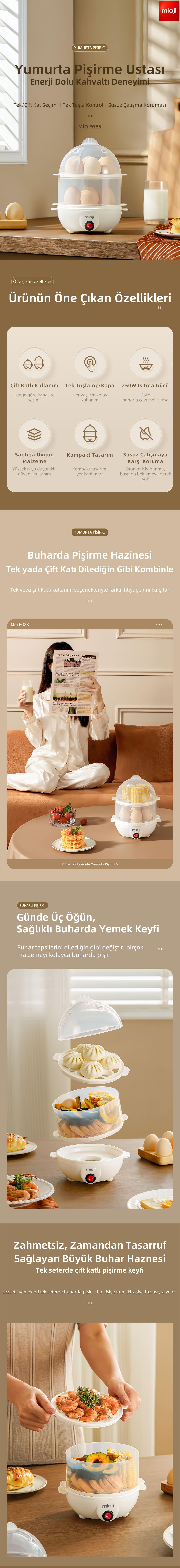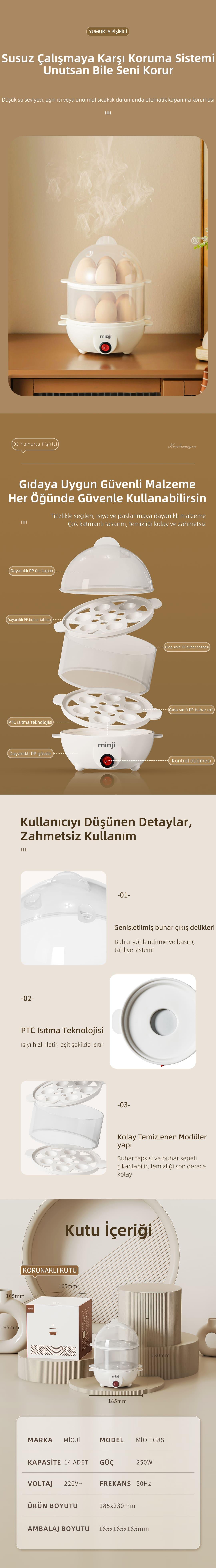 Mioji Mio EG8S, sadece bir yumurta haşlama makinesi değil; sabah rutinini değiştirecek akıllı bir mutfak yardımcısıdır. Enerji verimliliği, yüksek güvenlik önlemleri, kolay temizlik ve şık tasarımıyla günün her anında elinin altında olmayı hak ediyor.