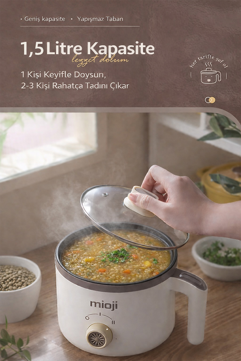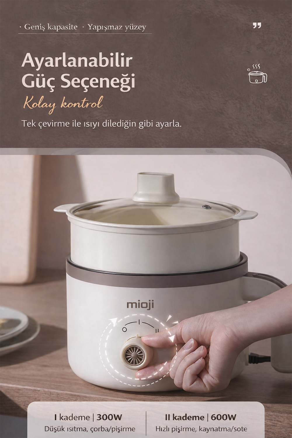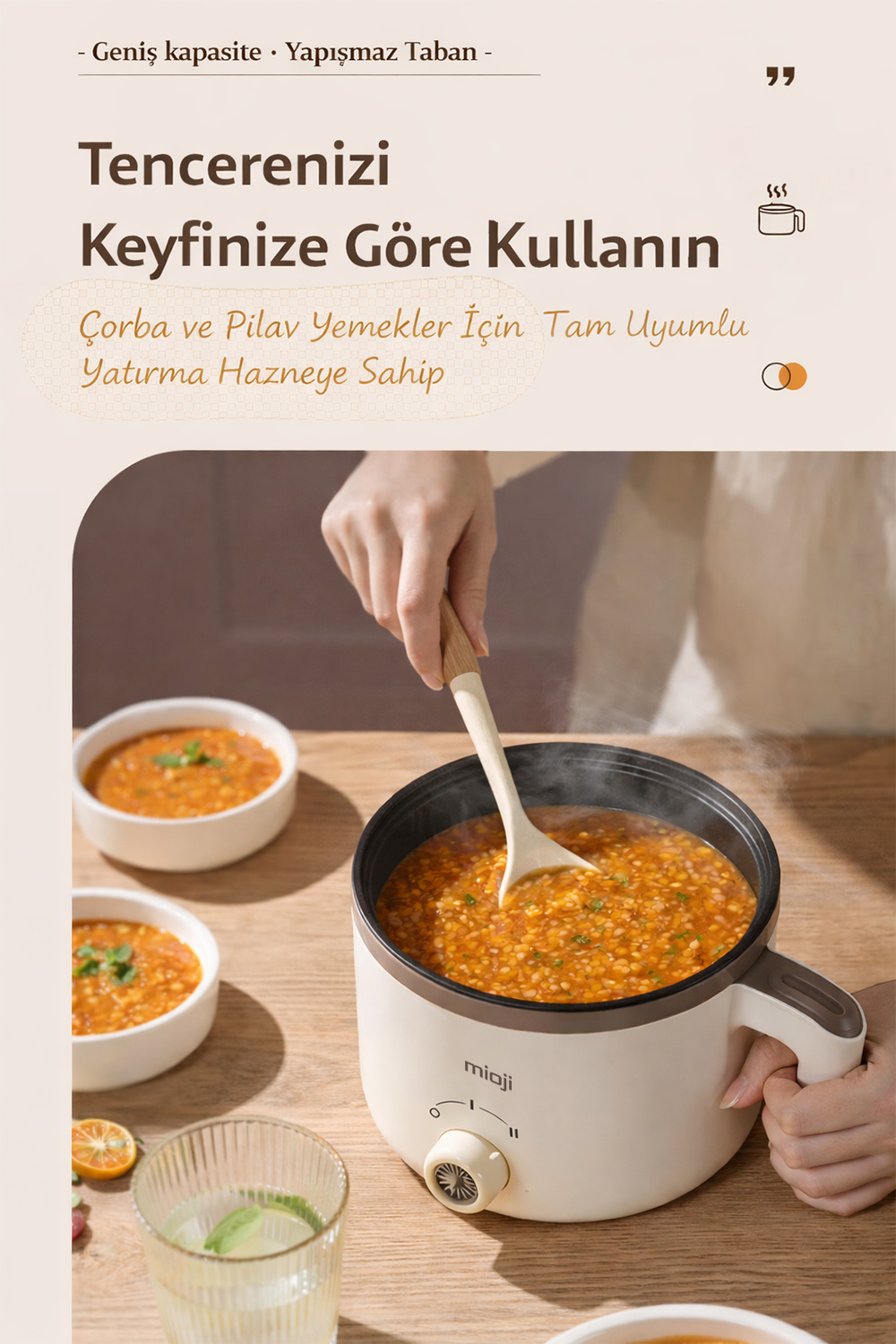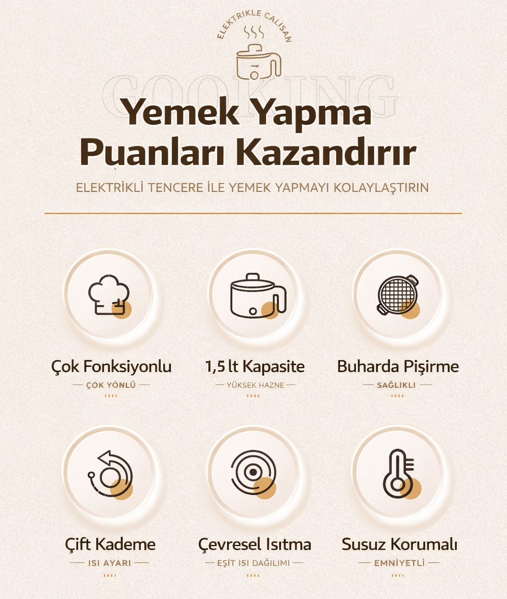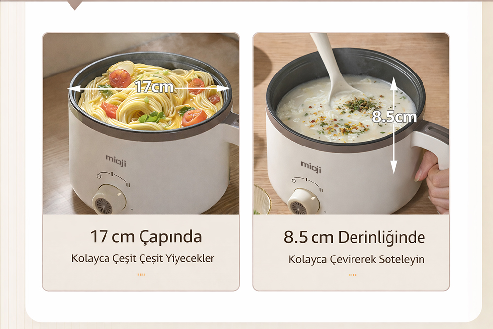 Elektrikli mini tencere kategorisinde ürün seçerken kullanıcılar genellikle üç şeye bakar: kapasite, kullanım kolaylığı ve güven veren yapı. Mioji Mio EP50, bu üç başlıkta dengeli bir profil sunar.