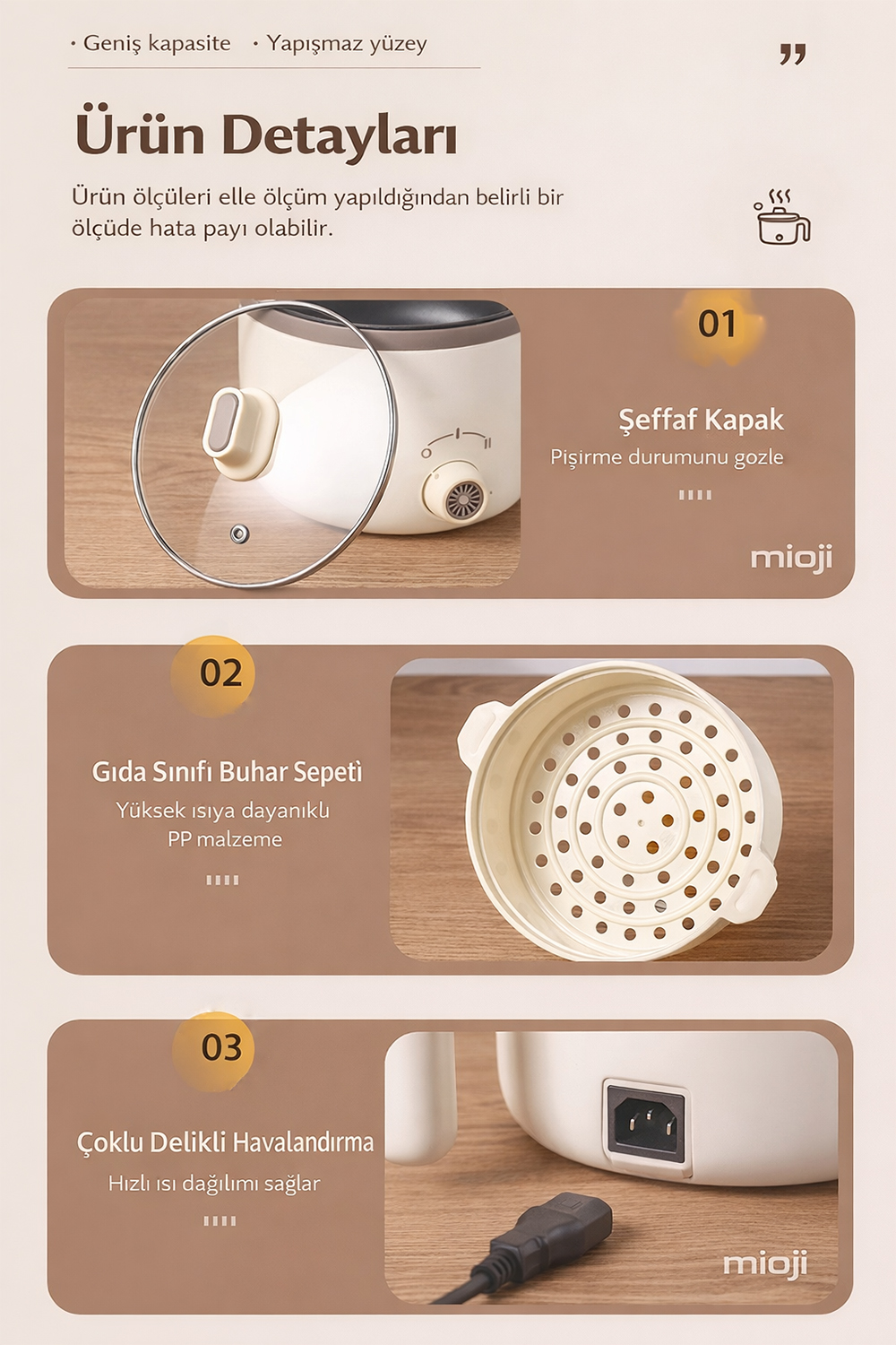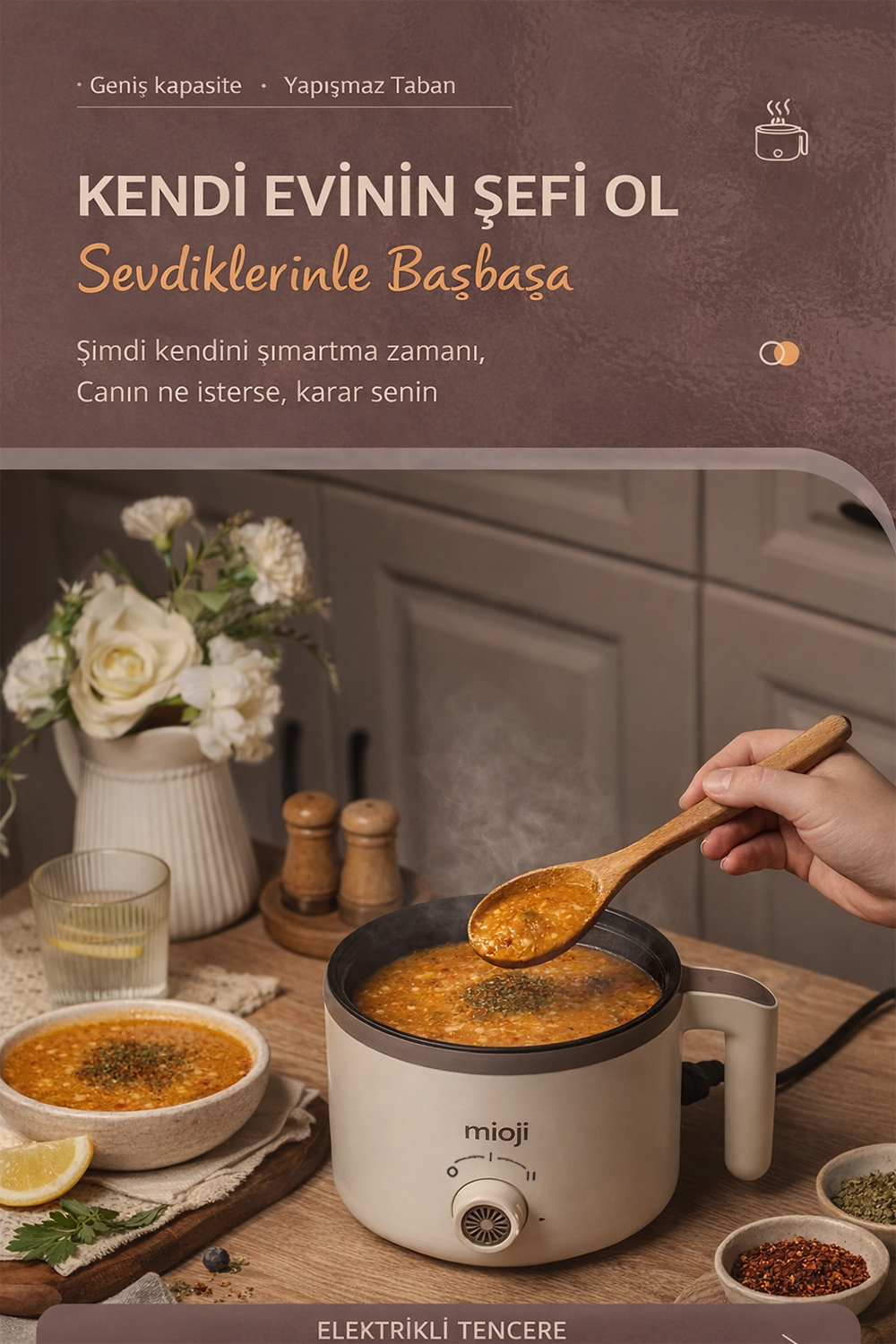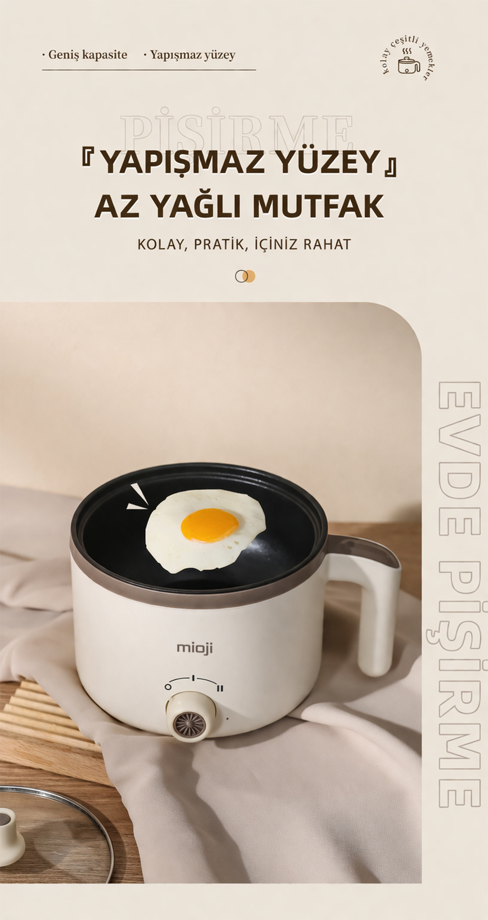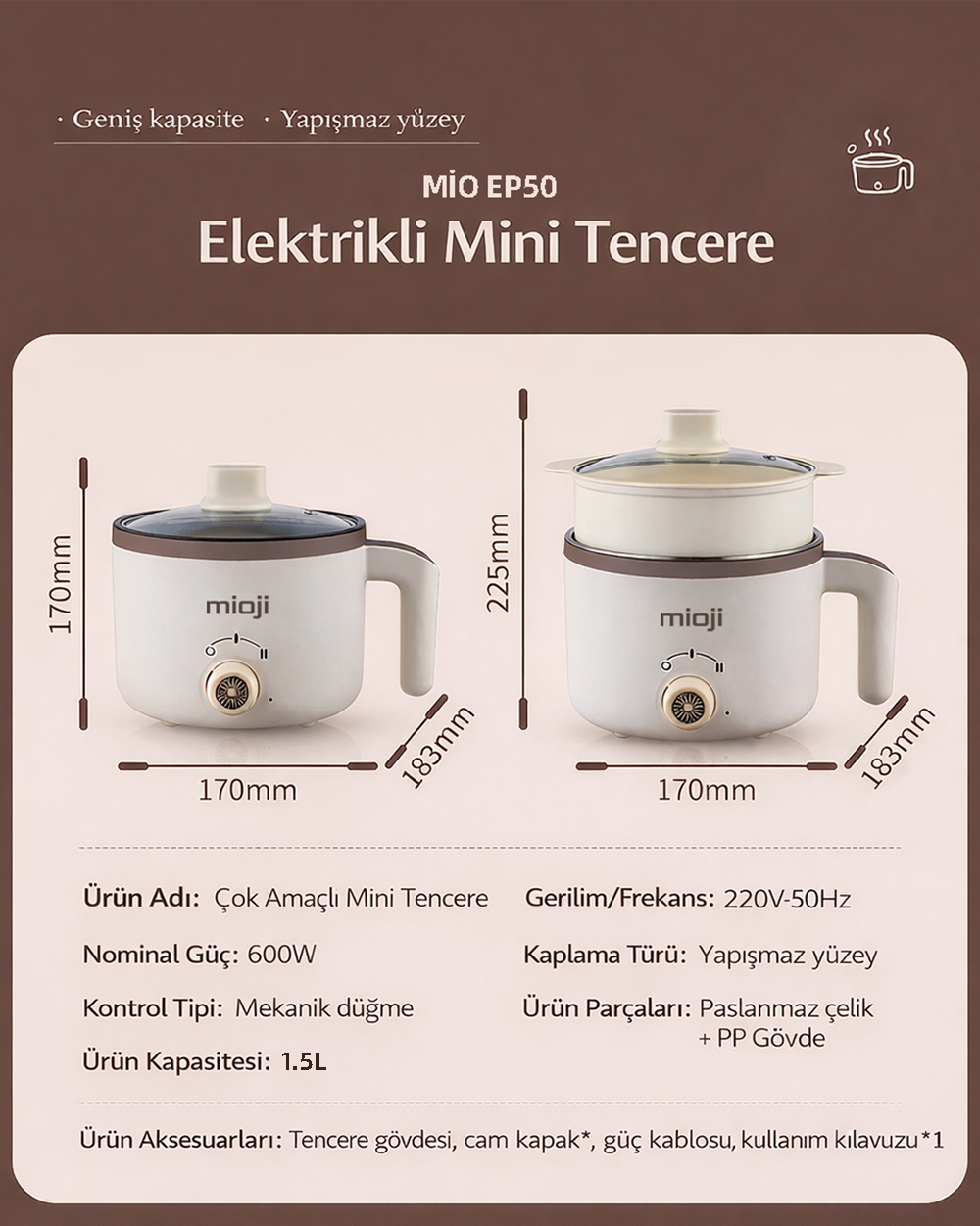 Elektrikli mini tencere kategorisinde ürün seçerken kullanıcılar genellikle üç şeye bakar: kapasite, kullanım kolaylığı ve güven veren yapı. Mioji Mio EP50, bu üç başlıkta dengeli bir profil sunar.