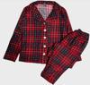 Modella Life Kids Miosse Kids Kız Çocuk Pamuklu Süet Kırmızı Ekose Desenli Gömlek Yaka Boydan Düğmeli Uzun Kollu Pijama Takımı M6591