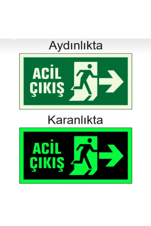 Ürünümüz tüm denetimlere uygun şekilde tasarlanmıştır gece karanlığında parlayan üründür Ürünün özellikleri FOSFORLU ÇIKIŞ EXIT YÖN LEVHASI Fotolümen nedir? Doğal olarak aydınlıkta depoladığı ışığı karanlıkta yine ışık olarak geri verebilen sticker ( yapışkanlı ) folyo çeşididir.