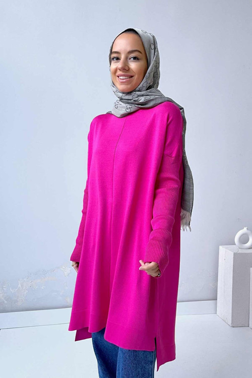 Ürün Özellikleri : Bisiklet Yakalı, Yan Yırtmaç Detaylı Kadın Tesettür Tunik