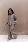 Kadın Uzun Kollu Kapşonlu önden Fermuarlı Viskon Iki Iplik Bluz Ve Pantolon Ikili Takım - Image 1