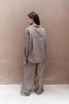 %100 Pamuklu kumaştan relaxed fit takım. Relaxed fit gömlek, geniş Küba yaka ve uzun kollu. Düğme kapamalı. Regular fit geniş kesim rahat pantolon, elastik bel ve düğme detaylı tasarım.