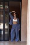 %100 Pamuklu kumaştan relaxed fit takım. Relaxed fit gömlek, geniş Küba yaka ve uzun kollu. Düğme kapamalı. Regular fit geniş kesim rahat pantolon, elastik bel ve düğme detaylı tasarım.