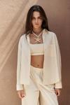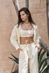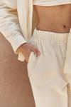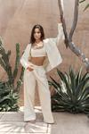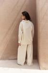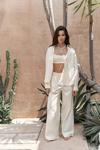 %100 Pamuklu kumaştan relaxed fit takım. Relaxed fit gömlek, geniş Küba yaka ve uzun kollu. Düğme kapamalı. Regular fit geniş kesim rahat pantolon, elastik bel ve düğme detaylı tasarım.