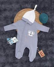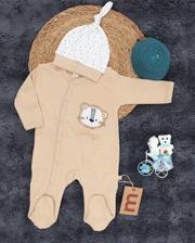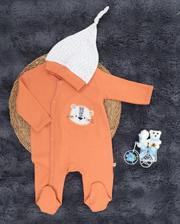 Miracool Çıtçıtlı Aslan Desenli Tulum / Şapka Hediye / %100 Pamuklu / Bebek Tulum / Yenidoğan Tulum