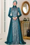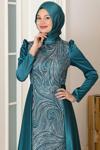 Kollari Fiyonklu Pul Payetli Sultan Tesettür Abiye Zümrüt - Image 1