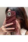 IPHONE 14 PROMAX 3D DALGALI KABARTMALI PARLAK YÜZEYLİ BORDO KILIF
