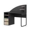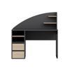 - Masanın üstünde 2 küçük raf, çekmecelerin üstünde 2 bölme + 1 raf: Düzenli depolama imkânı.
