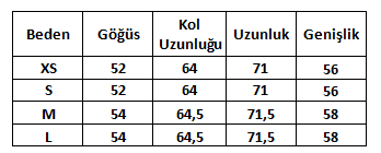 Ürün Beden Tablosu: