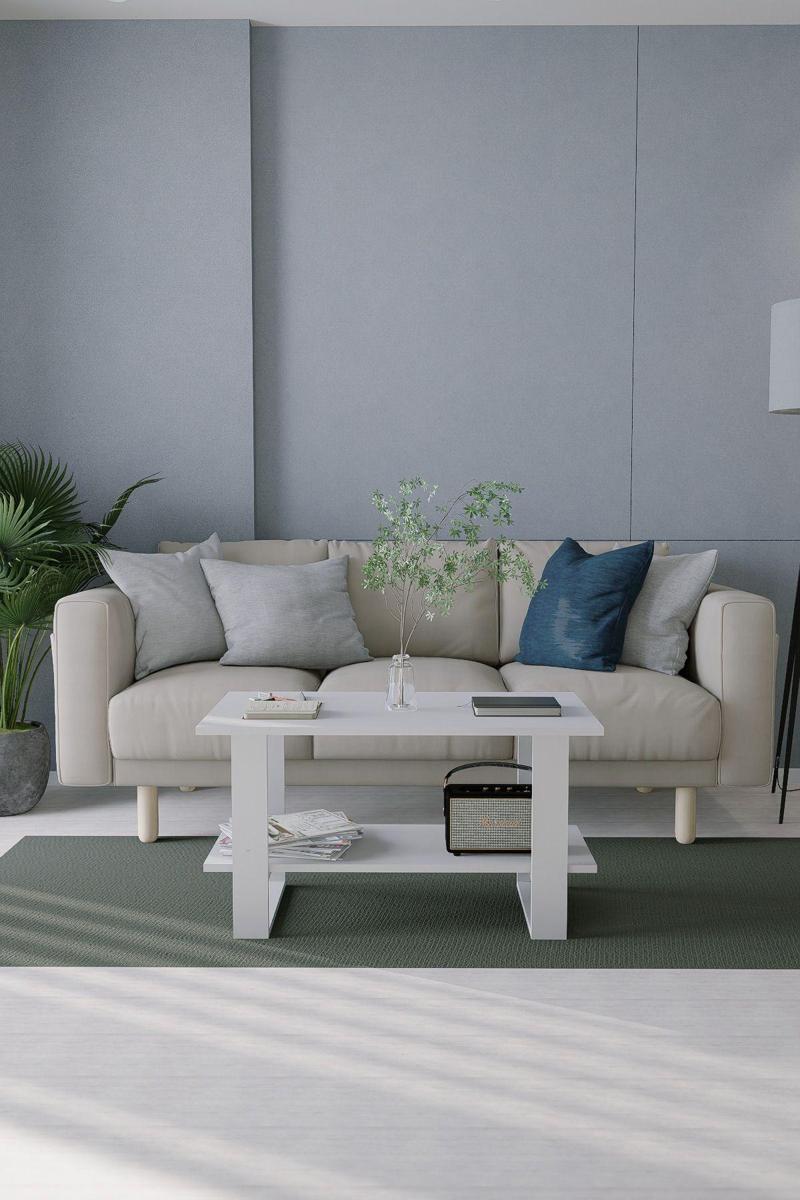 Mirobi ındex Modern Orta Sehpa Beyaz - Ahşap Ayaklı Dikdörtgen Tasarım 90x50