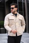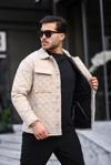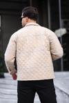 Bej Çizgili Kapitone Detaylı Regular Fit Ceket-2455