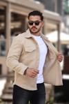 Bej Kıvırcık Dokulu Kumaş Gömlek Yaka Cepli Regular Fit Ceket- 2309