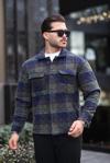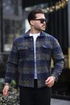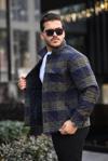 Haki Lacivert Ekose Kapitone Detaylı Regular Fit Ceket-2454