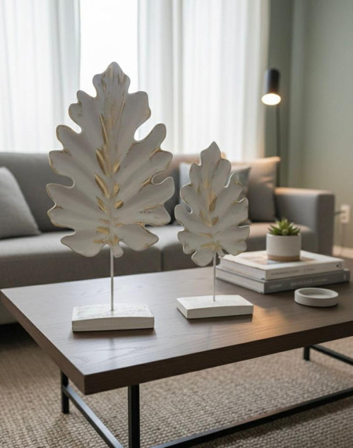 Mirsa Global Dekoratif Çınar Ağacı Yaprak 2 Li Gold Masa Üstü Sehpa Ev Dekoratif Şık Biblo Ürün Çınar Yaprak