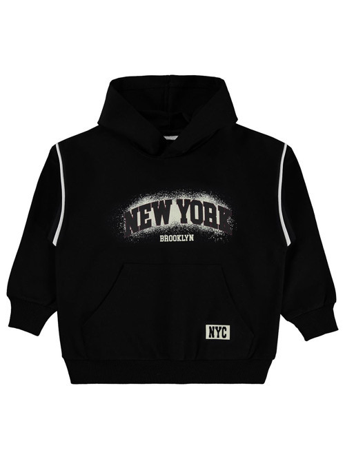 Mışıl Kids Kanguru Cepli Yanlar Biyeli 6-9 Yaş Eşofman Takımı - Siyah 7-8 Yaş