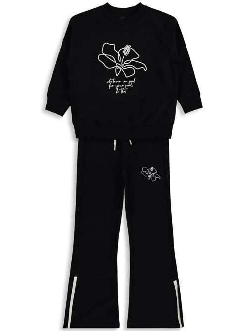 Mışıl Kids Paça Yırtmaçlı 6-9 Yaş Eşofman Takımı - Siyah 6-7 Yaş