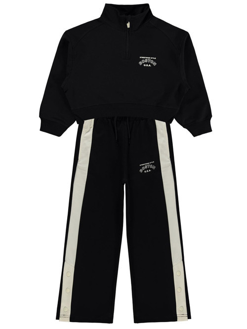 Mışıl Kids Yarım Fermuarlı 6-9 Yaş Eşofman Takımı - Siyah 9-10 Yaş