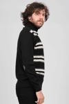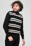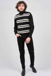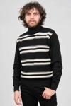 Erkek Tam Balıkçı Çizgili Yün Kazak 3869077 Siyah