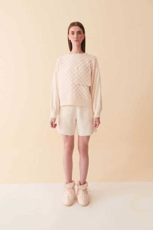 Sezon: İçerik: Ekru renkli kazağın kapitone deseni ve rahat kalıbı ile sportif şıklığı kombinlerinize taşıyın.