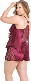 GiyimCity Miss Büyük Beden Bordo Saten Babydoll Şort Takımı 1059