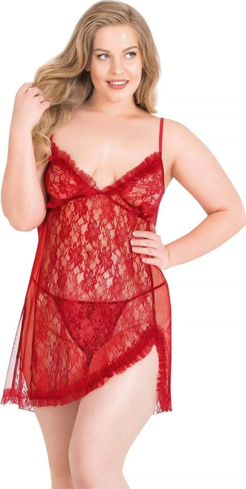 GiyimCity Miss Büyük Beden Kırmızı Kısa Tül Gecelik 3026