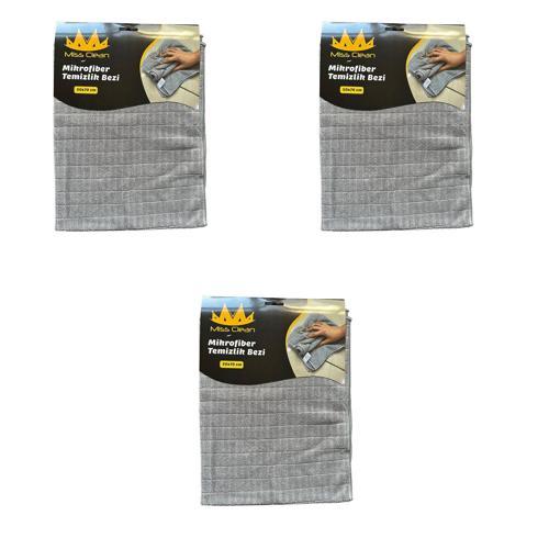 Missclean Miss Clean Mikrofiber Kareli Yüzey Cam Temizlik Bezi 50x70 Cm Süper Emici - 320 Gr. - Gri - 3 Adet