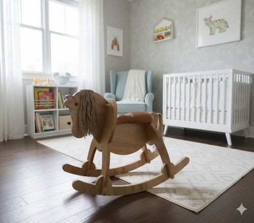 Missidea Ahşap Sallanan At, çocukların denge ve koordinasyon gelişimini desteklerken hayal güçlerini de zenginleştirir. Doğal ahşap dokusu ve minderli deri oturağı sayesinde hem şık hem de ergonomik bir tasarım sunar.