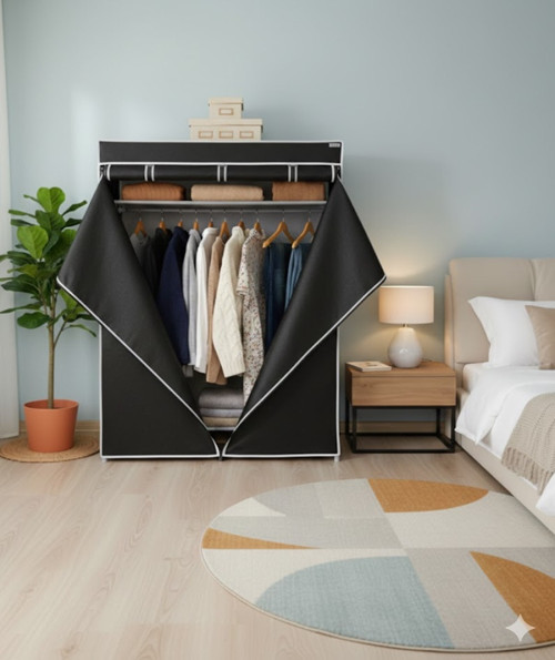 Basic Portatif Bez Dolap | Metal İskeletli Kumaş Gardırop Siyah