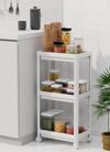 Mithra Life tarafından üretilen bu 3 katlı hazneli tekerlekli raf, hem mutfak hem de banyo için pratik bir depolama çözümü sunar.
