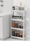 Mithra Life tarafından üretilen bu 4 katlı tekerlekli slim ince raf, banyo ve mutfaklar için ideal bir depolama çözümü sunar.