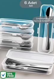 Mithra Life 6 Adet Şeffaf Çeyizlik Çatal Kaşık Düzenleyici Taşıma Seti Piknik Saklama Kutusu MIT1239