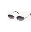 Miu Miu'nun zarif tasarımıyla dikkat çeken bu gözlük, şıklığı ve modernliği bir araya getiriyor. Gri cam rengi, sofistike bir görünüm sunarken, altın çerçeve rengi ile lüks bir dokunuş katıyor.