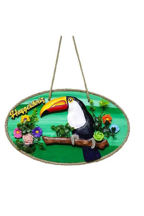 Evinizin girişine sıcaklık ve egzotik bir hava katmaya ne dersiniz? Canlı renkleri ve sevimli tasarımıyla dikkat çeken, tamamen el yapımı bu Tukanlı "Hoş Geldiniz" Kapı süsü ile misafirlerinizi gülümsetin!🦜
