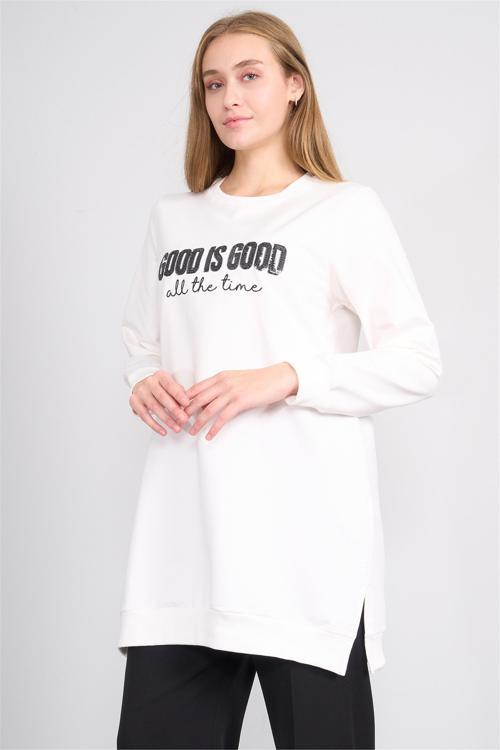 Miya Mira Modest 8806 Kadın Bisiklet Yaka 2 İplik Oversize Tunik Krem