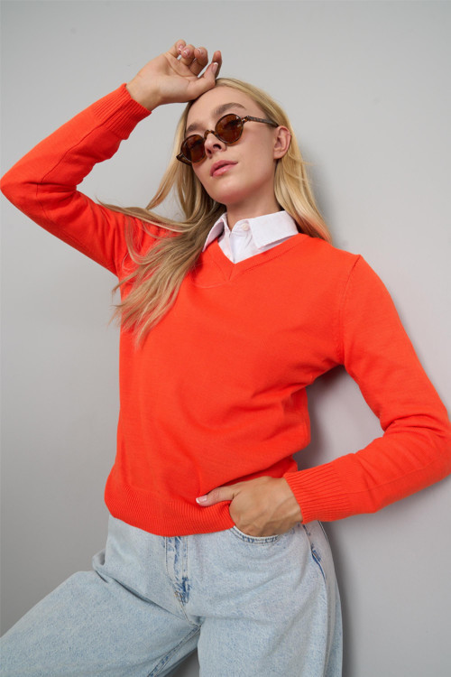 Rahat kesimiyle günlük kullanım için ideal olan Miyamira V Yaka Mercan Kazak, her yaş grubuna hitap eder. Canlı rengi ile dikkat çeken bu kazak, enerjik ve şık bir görünüm sunar.Örme kumaşı sayesinde yumuşak dokunuşuyla konforlu bir deneyim sağlar. Uzun kollu tasarımı ile mevsim geçişlerinde de tercih edilebilen kalın yapısı, soğuk havalarda sıcak tutar. Sade ve düz deseniyle zamansız bir stil oluştururken, casual ortamlarda rahatlıkla kullanılabilir.