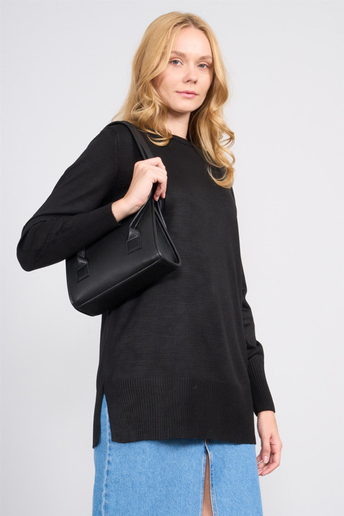 Çetinkaya Miyamira 2306 Kadın Basic Bisiklet Yaka Yanları Yırtmaçlı Triko Siyah