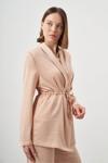Mizalle Bağ Detaylı Saten Bej Ceket