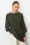 - Haki rengiyle zarif ve doğal bir görünüm sunan balon kollu tunik, günlük kullanım için idealdir.