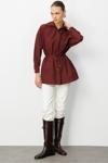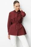 Mizalle Beli İp Büzgülü Bordo Paraşüt Trençkot Tunik, modern tasarımı ve kaliteli kumaş dokusuyla öne çıkan özel bir parçadır. Şık detayları sayesinde hem günlük yaşamda hem de özel davetlerde rahatlıkla tercih edilebilir. regular fit kalıbı ve uzun kol tasarımıyla konfor ve şıklığı bir araya getirir.