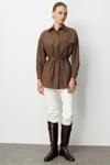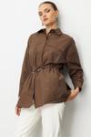 Mizalle Beli İp Büzgülü Kahverengi Paraşüt Trençkot Tunik, modern tasarımı ve kaliteli kumaş dokusuyla öne çıkan özel bir parçadır. Şık detayları sayesinde hem günlük yaşamda hem de özel davetlerde rahatlıkla tercih edilebilir. regular fit kalıbı ve uzun kol tasarımıyla konfor ve şıklığı bir araya getirir.