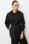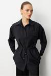 Mizalle Beli İp Büzgülü Siyah Paraşüt Trençkot Tunik, modern tasarımı ve kaliteli kumaş dokusuyla öne çıkan özel bir parçadır. Şık detayları sayesinde hem günlük yaşamda hem de özel davetlerde rahatlıkla tercih edilebilir. regular fit kalıbı ve uzun kol tasarımıyla konfor ve şıklığı bir araya getirir.