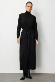 Mizalle Beli İpli İnce Piliseli Siyah Maksi Etek, modern tasarımı ve kaliteli kumaş dokusuyla öne çıkan özel bir parçadır.