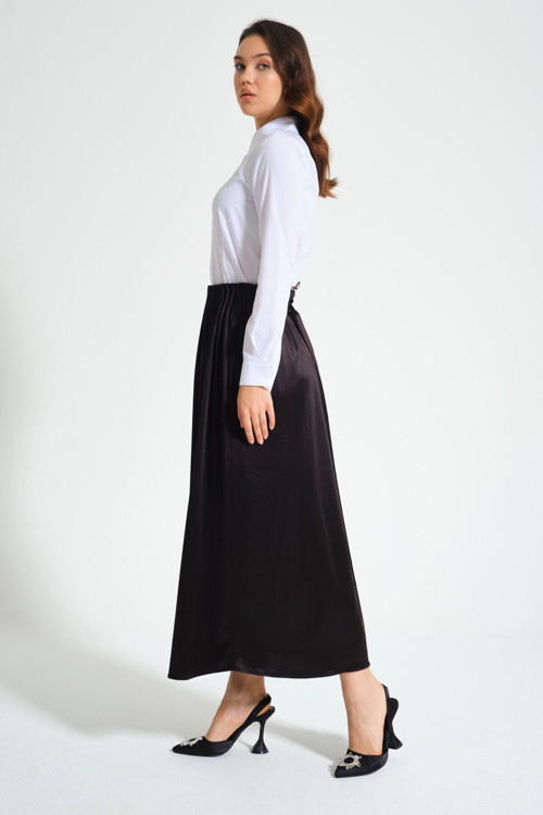 - Krep dokuma tipi, eteğe hafif ve nefes alabilen bir yapı kazandırarak gün boyu rahatlık sağlar