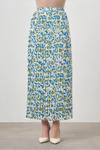Mizalle Botanik Desenli Plise Mavi Etek