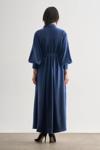 Pile detayları, elbiseye zarif bir hareket katarken, kemer detayı bel kısmını vurgulayarak şık bir siluet oluşturur.