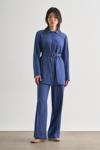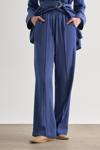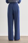 Mizalle İndigo Mavi Mizalle Denim Dokulu Beli Lastikli Geniş Paça Pantolon