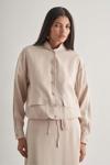 Mizalle İp Büzgülü Torba Cepli Modal Karışımlı Taş Rengi Ceket Nötr ve zarif taş rengiyle öne çıkan Mizalle İp Büzgülü Torba Cepli Ceket, %80 modal ve %20 polyester karışımı kumaşı sayesinde yumuşak ve dayanıklı bir kullanım sağlar.